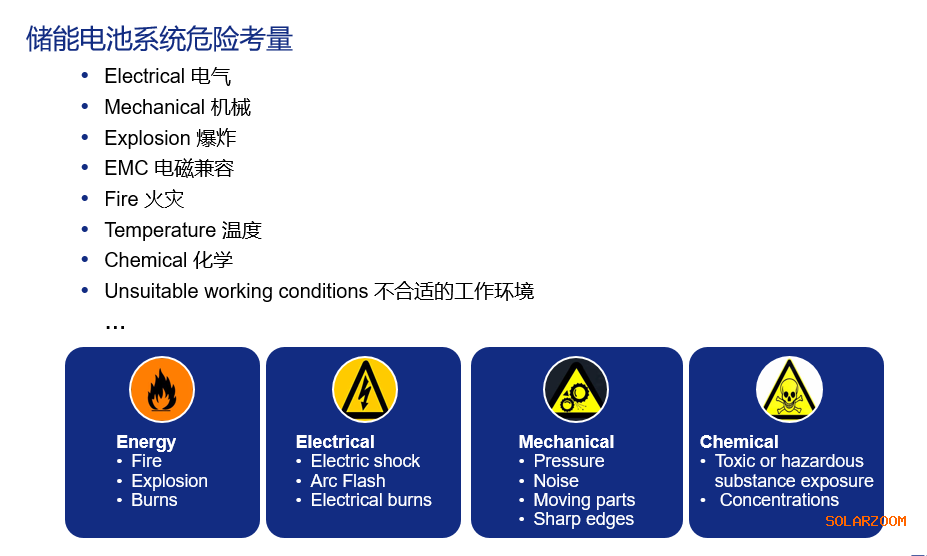 储能电池系统在电网发-输-配-用环节广泛应用,装机规模日益增大,各种电池类型参差不齐,随着电池功率的增大,发生事故的危险性也有一定程度增加,储能发生安全功能异常时,将会导致潜在的危害事件(例如,储能系统正常运行过程中,发生非预期电压温度检测失效而引发事故风险)。TÜV北德可再生能源部储能系统技术工程师张立超将为大家阐明储能安全相关电池系统在安全生命周期内应满足的功能安全要求,以避免或降低电池系统发生故障而导致的风险,从而保障储能系统安全高效的运行。