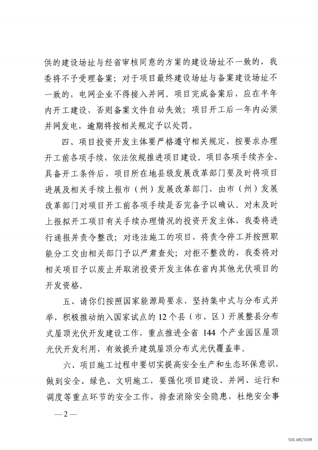 《复函》还要求,项目完成备案后,应在半年内开工建设,否则备案文件自动失效;项目开工后一年内必须并网发电,逾期将按相关规定予以处罚。