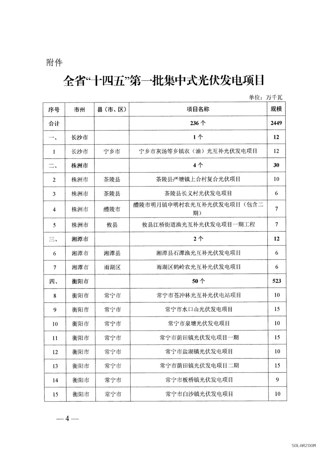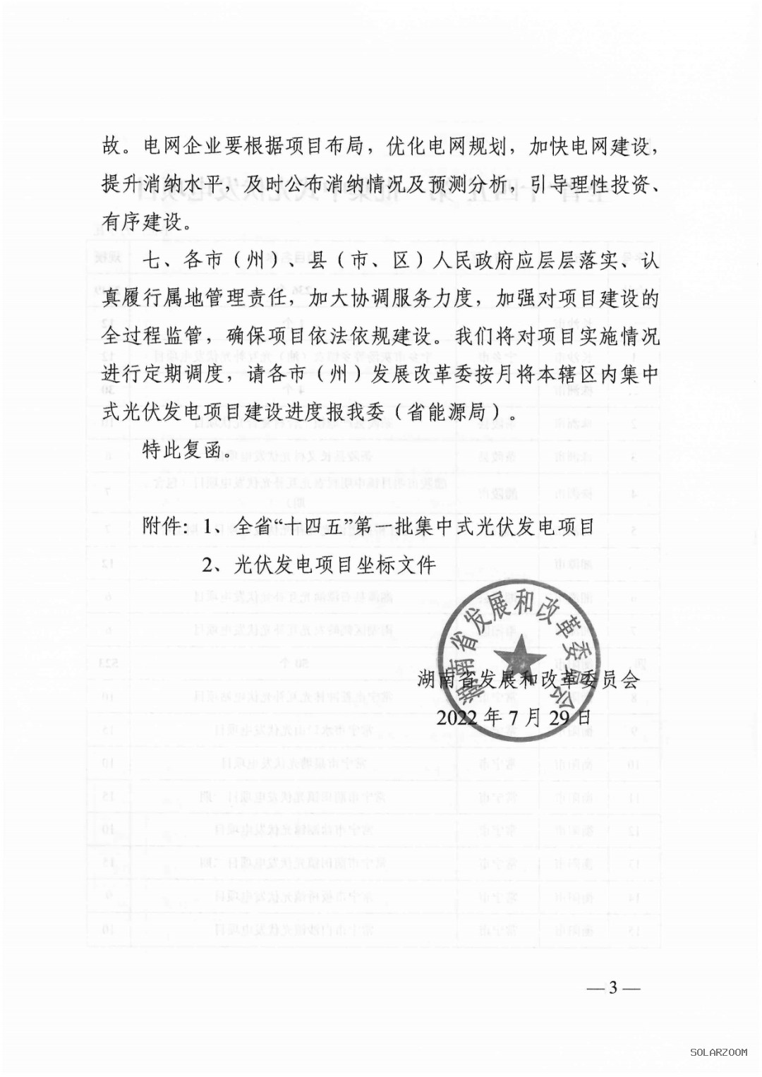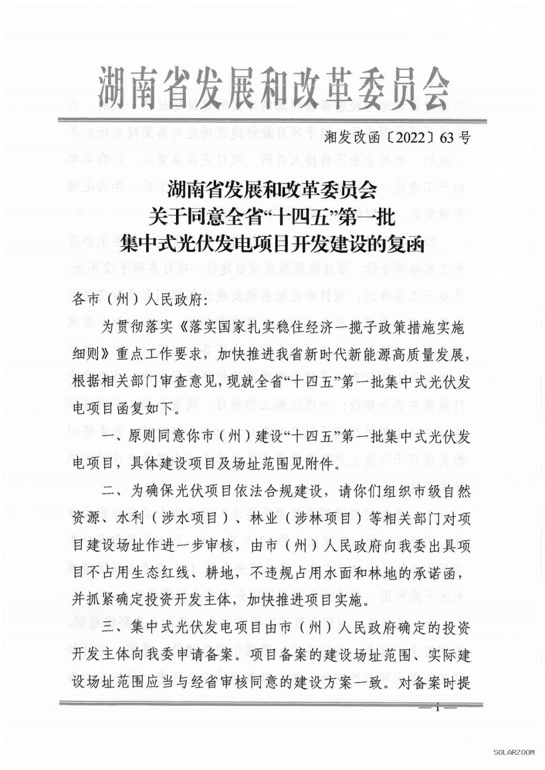 7月29日,湖南省发展和改革委员会发布《关于同意全省十四五”第一批集中式光伏发电项目开发建设的复函》。