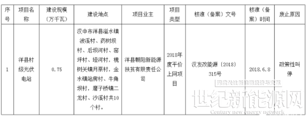 附件: 1.陕西省废止的风电光伏发电项目统计表