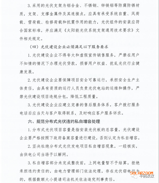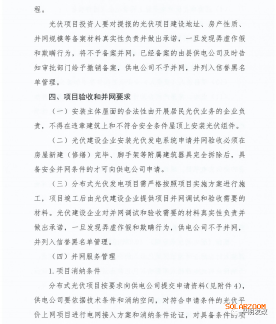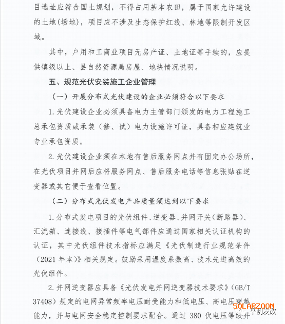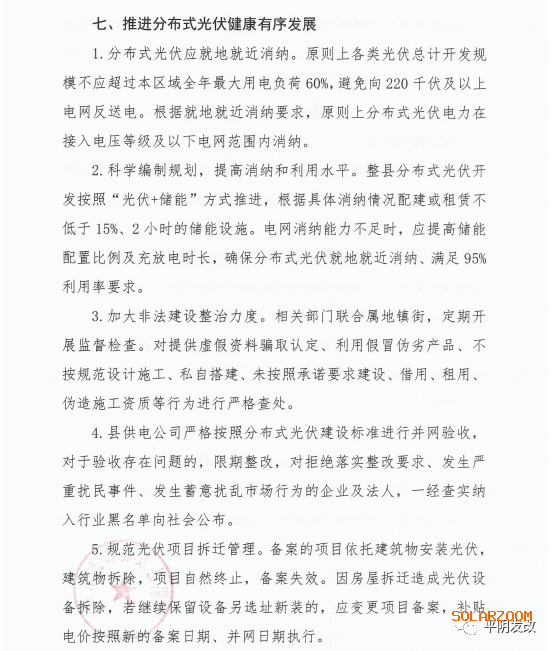 此外,整县分布式开发按照“光伏+储能”方式推进,根据具体消纳情况配建或租赁不低于15%、2小时的储能设施。电网消纳能力不足时,应提高储能配置比例及充放电时长,确保分布式光伏就地就近消纳、满足95%利用率要求。