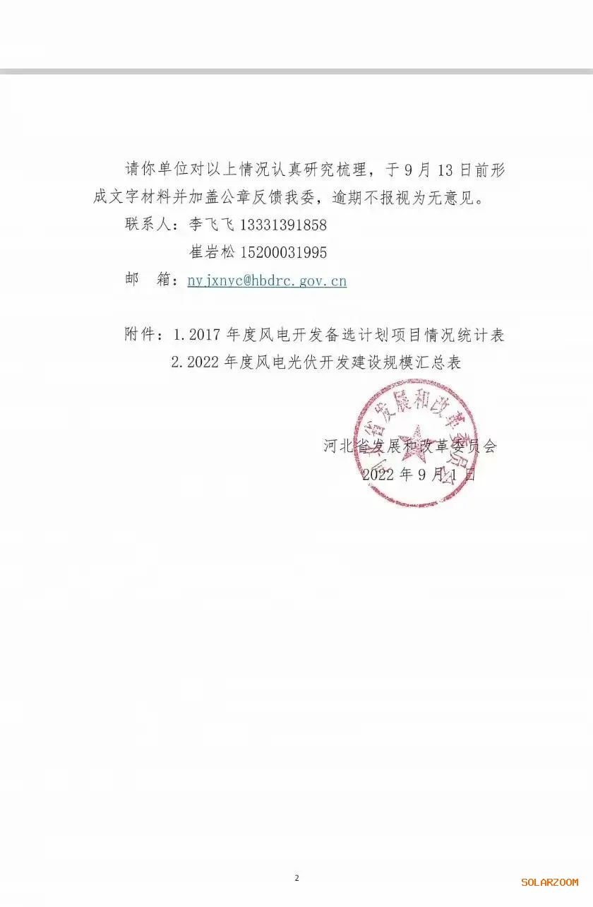 9月1日,河北省发改委发布了《关于征求风电光伏项目开发建设意见建议的函》,并公示了 2022年度风电、光伏开发建设规模汇总表。