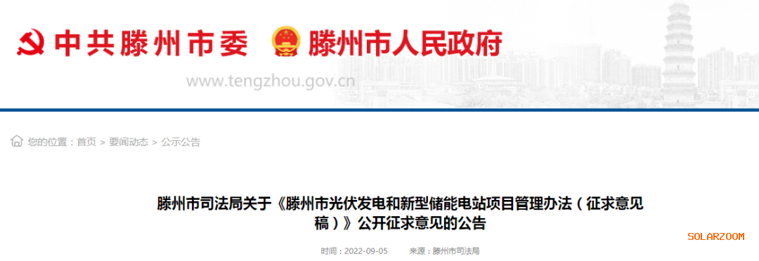 滕州市司法局关于《滕州市光伏发电和新型储能电站项目管理办法(征求意见稿)》公开征求意见的公告