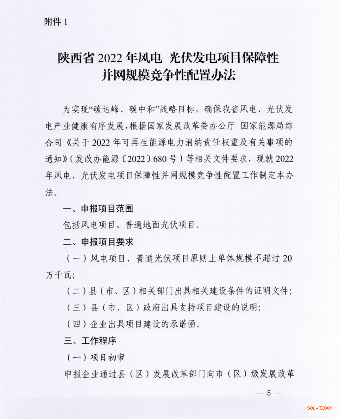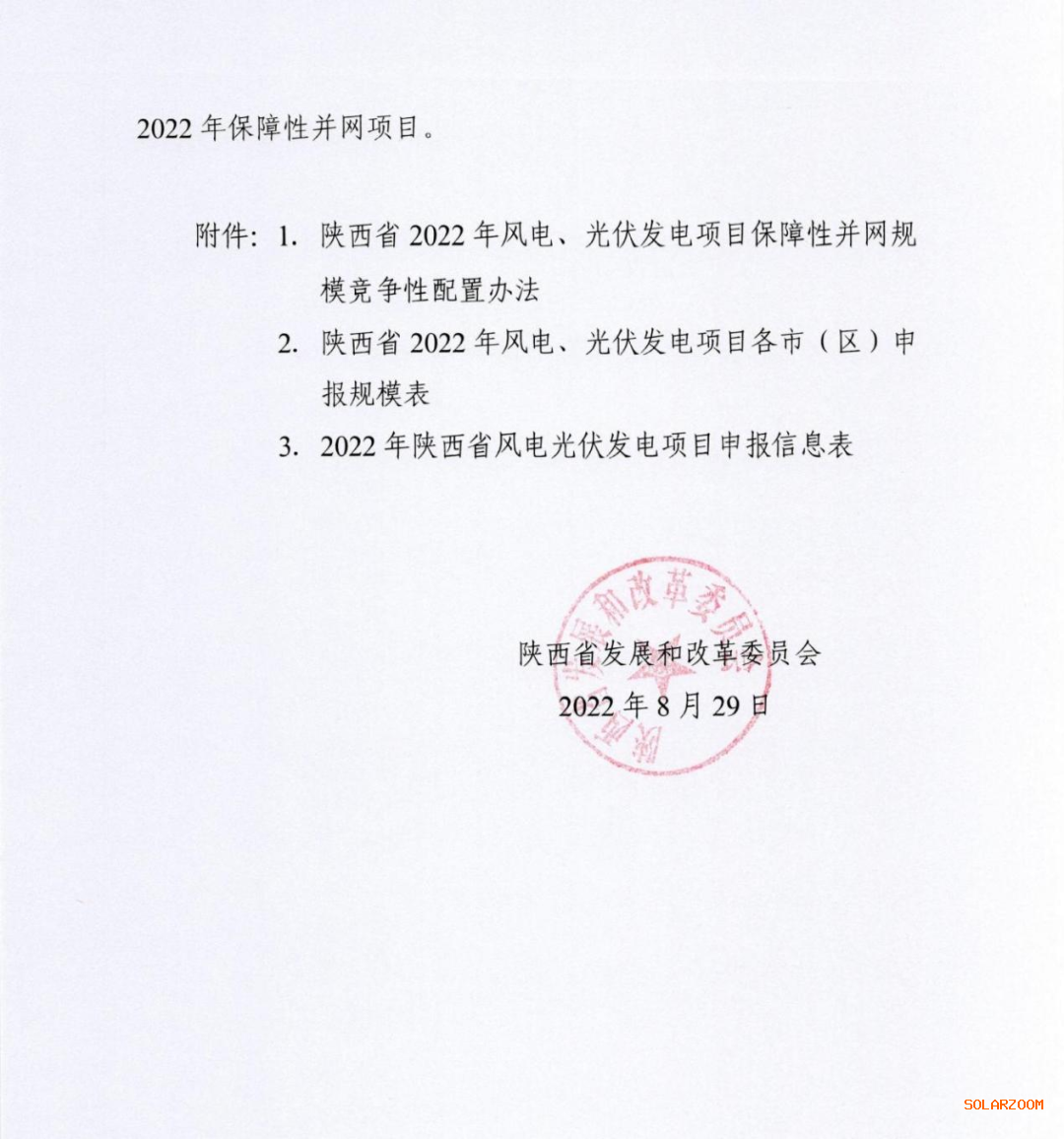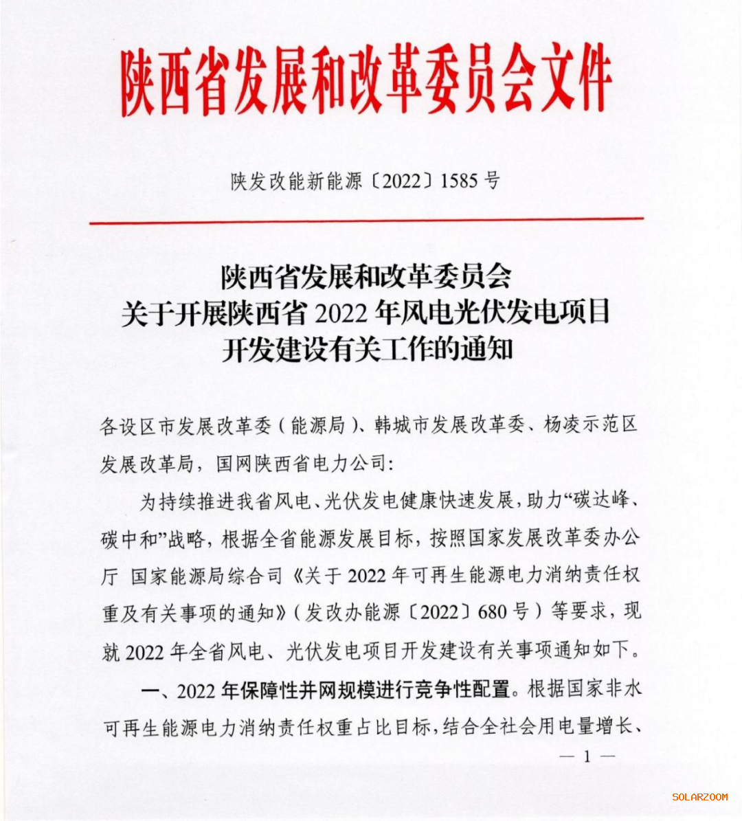 9月2日,陕西省发改委下发《关于开展陕西省2022年风电、光伏发电项目保障性并网规模竞争性配置办法》。