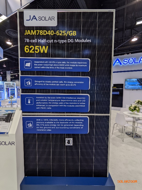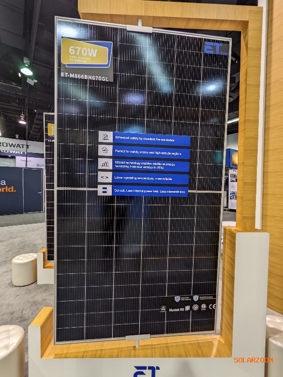 据不完全统计,在本次RE+展会中,中国领军企业天合光能、阿特斯、正泰,海外企业韩华、SEG、Waaree等10多家光伏领先企业纷纷推出600W+产品。600W+产品在北美已经蔚然成风,成先进组件的代表。