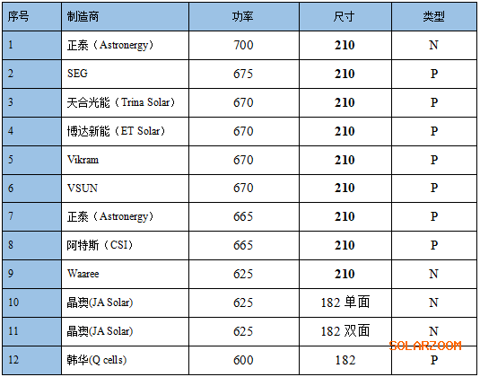 而在统计的12款600W+产品中,210硅片尺寸的产品为9款,占据绝对优势,210技术路线优势再次凸显。新一代210产品技术兼容开放,不仅适用于现有的210电池组件产线,同样适用于N型等其他新型高效电池组件,功率突破700W+。正基于此,210技术平台展现出巨大的发展可持续性。