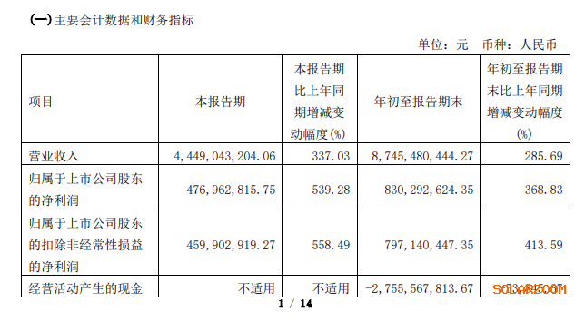 三季度净利润增长超5倍