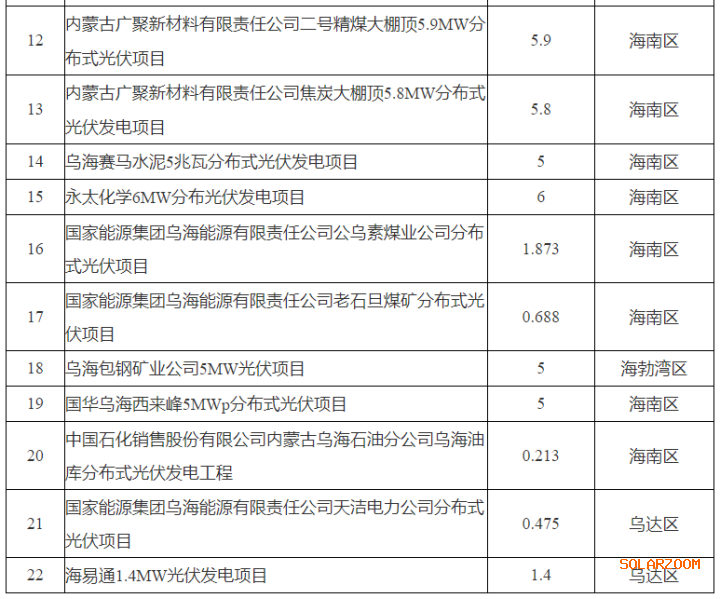 10月12日,乌海市能源局关于2022年分布式光伏项目竞争优选结果的公示,其中共有22个分布式光伏项目,共计51.593MW规模。