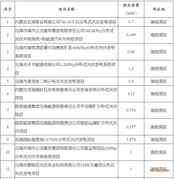 乌海市能源局关于2022年分布式光伏项目竞争优选结果的公示