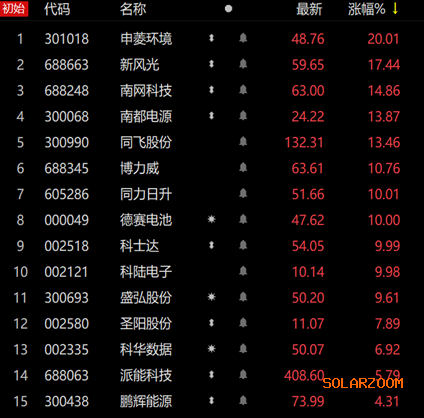 截至午间,申菱环境20CM涨停,新风光涨超15%,南网科技、南都电源、同飞股份、博力威涨超10%,同力日升、德赛电池、科陆电子涨停,盛弘股份、科华数据、派能科技、鹏辉能源等跟涨。