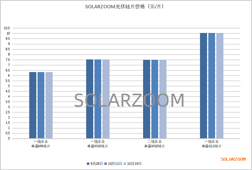 部分疫情地区硅片物料以及运输物流等问题仍对相应地区的硅片厂商生产排产、运输仍有一定影响,当前市场的部分企业存在开工率下调的情况,此外下游高效大尺寸的集中需求的带动使得当前国内单晶高效大尺寸硅片价格有一定支撑,但实际成交价格相比报价也略低,目前单晶182高效正A级硅片价格在7.5元/片左右,单晶M6/G12硅片价格在6.3、10.05元/片左右,其他硅片价格成交偏弱且略显混乱。整个四季度随着上游硅料产量明显的释放,硅片的供给也将有进一步释放,而在今年下游电池环节扩产相比其他环节较为有限的情况下,单晶硅片供给在当前已不紧张的情况下将会供过于求,市场上对单晶硅片价格下降预期不低。N型硅片方面,N型硅片整体相对平稳,当前单晶M6/M10/G12 150μm硅片价格维持在6.84、8.23、10.66元/片。