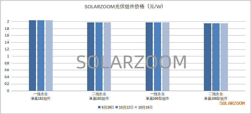 进入四季度国内项目的组件需求比例逐步放大,从三季度末开始在国内部分下游终端项目陆续开始有所启动,四季度不出意外将会达到年内装机高峰,当前国内主流组件厂商的排产需求基本较满,但国内组件当前的出货价格上变化不大,主流功率组件价格继续落在1.95元/W以上;但在对上游原材料价格有较强的降价预期下,四季度部分出货组件报价不排除有松动的可能。