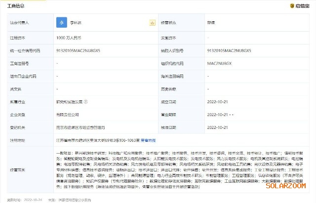 企查查APP显示,近日,江苏中电佳力华恒能源科技有限公司成立,法定代表人为李林达,注册资本1000万元,经营范围包含:储能技术服务;电池销售;光伏设备及元器件销售;互联网数据服务等。企查查股权穿透显示,该公司由南京中电华恒能源科技有限公司、佳力图共同持股。