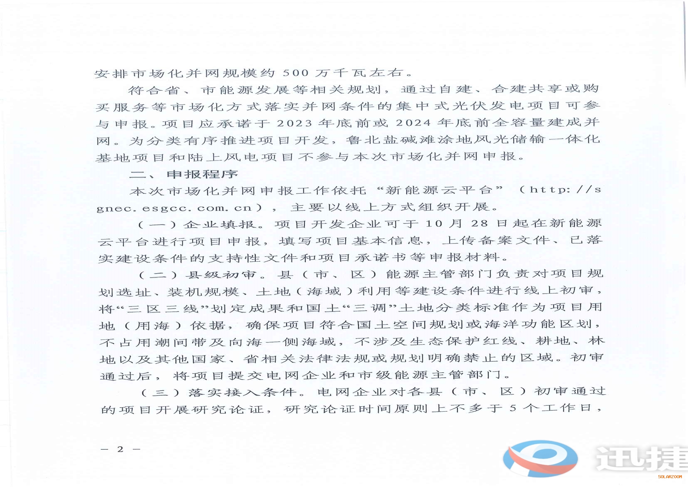 附件:关于组织开展2022年光伏发电项目市场化并网申报工作的通知