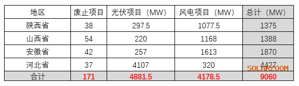 SOLARZOOM统计多家取消备案项目原因,发现多数项目均因超过建设期限予以废止,其中较多项目超过4年未完成建设并网,核准文件过期导致项目备案资格取消。其余原因还包括建设地点变更、取消计划以及环评不过关、触及生态红线等问题。