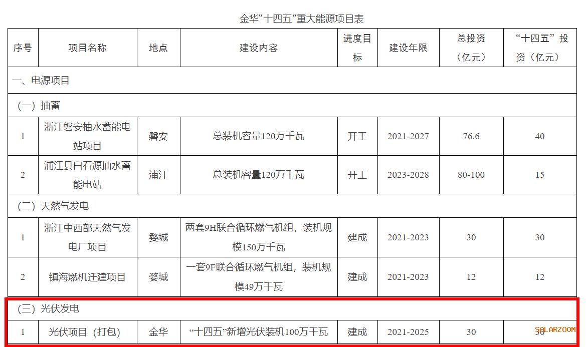 11月9日,浙江省金华市发改委印发《金华市能源发展“十四五”规划》,《规划》要求,进一步扩大太阳能利用范围。深挖分布式光伏潜力。开展整县(市、区)推进屋顶分布式光伏建设,利用城乡居民屋顶建设用户光伏;工业园区、经济技术开发区、特色小镇以及学校、商场等公共建筑发展“自发自用、余电上网”的分布式光伏;积极开展新建建筑一体化光伏发电系统,加快建筑屋顶太阳能热水器和光伏发电系统一体化应用。鼓励集中式光伏发展。利用荒山坡地、设施农业等用地标准化建设集中式光伏电站。“十四五”期间,新增光伏发电装机容量超100万千瓦。同时,积极探索电化学储能、电动汽车参与储能、压缩空气储能、电热冷综合储能等各类新型储能设施发展,将“光伏+储能”作为能源碳达峰的重要路径。