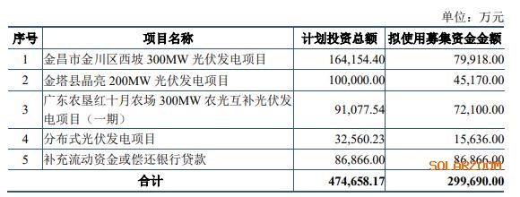 9月28日,晶科科技发布2022年度非公开发行A股股票预案(修订稿)。本次发行募集资金总额(含发行费用)不超过人民币299690.00万元(含本数),扣除发行费用后的募集资金净额将用于金昌市金川区西坡300MW光伏发电项目、金塔县晶亮200MW光伏发电项目、广东农垦红十月农场300MW农光互补光伏发电项目(一期)、分布式光伏发电项目、补充流动资金或偿还银行贷款。