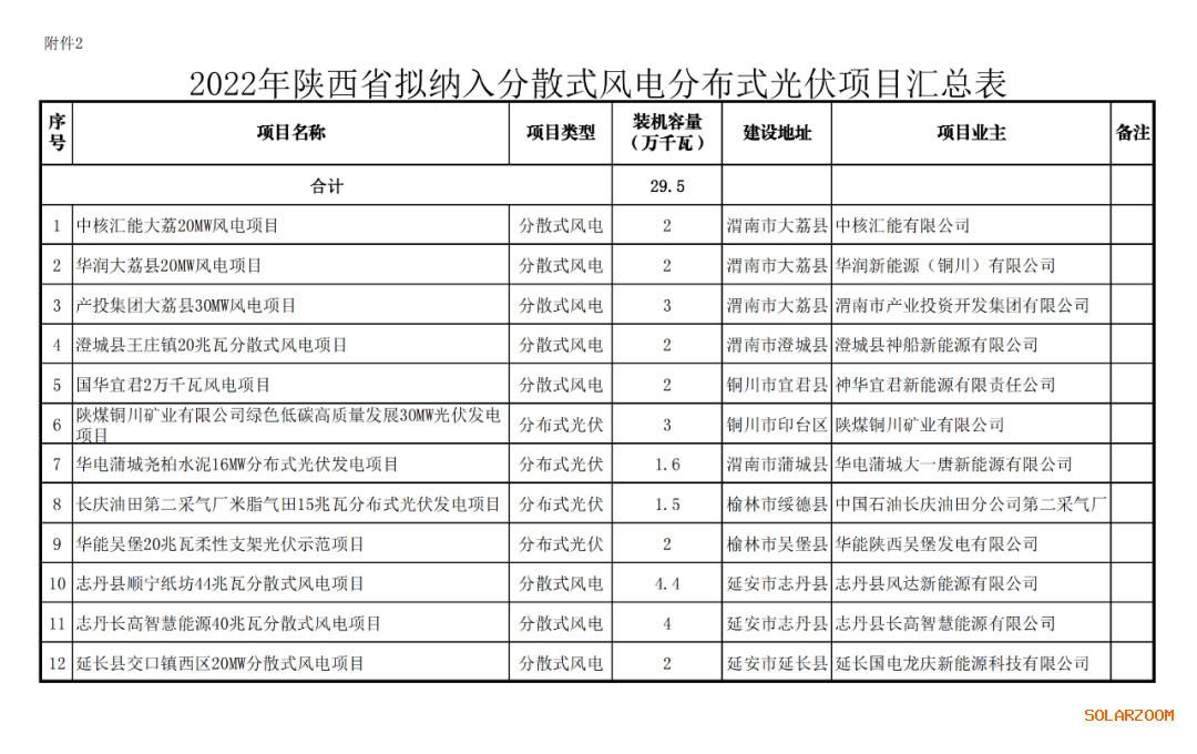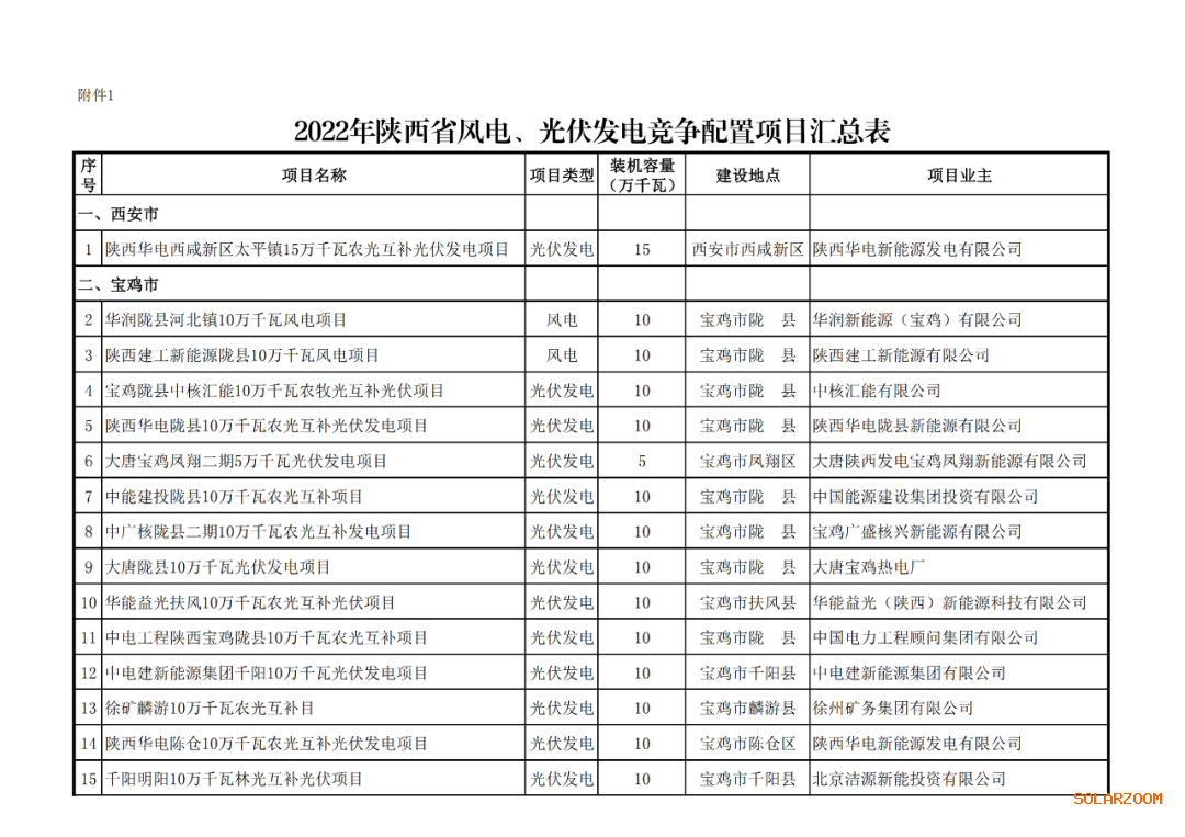11月24日,陕西省发改委公示了2022年风电、光伏发电项目保障性并网规模竞争性配置结果,共确定82个项目8.01GW纳入2022年陕西省风电、光伏发电项目保障性并网规模。