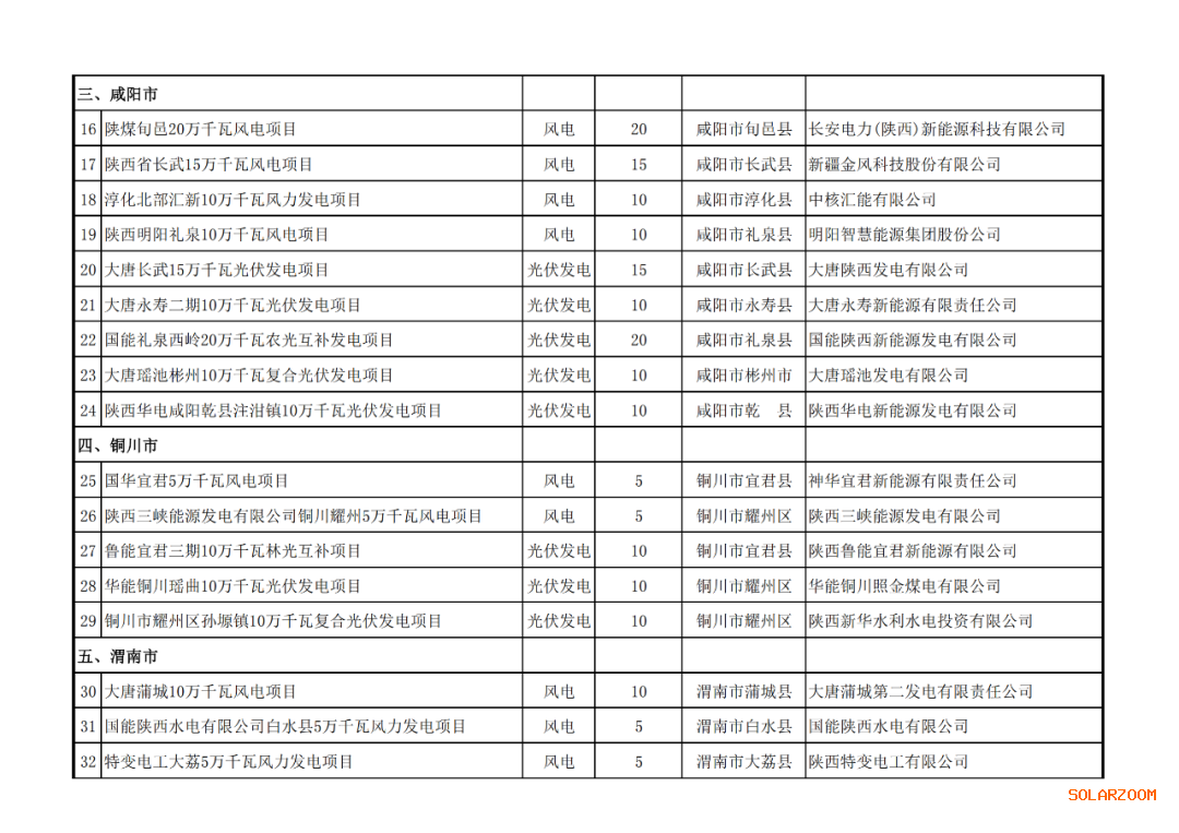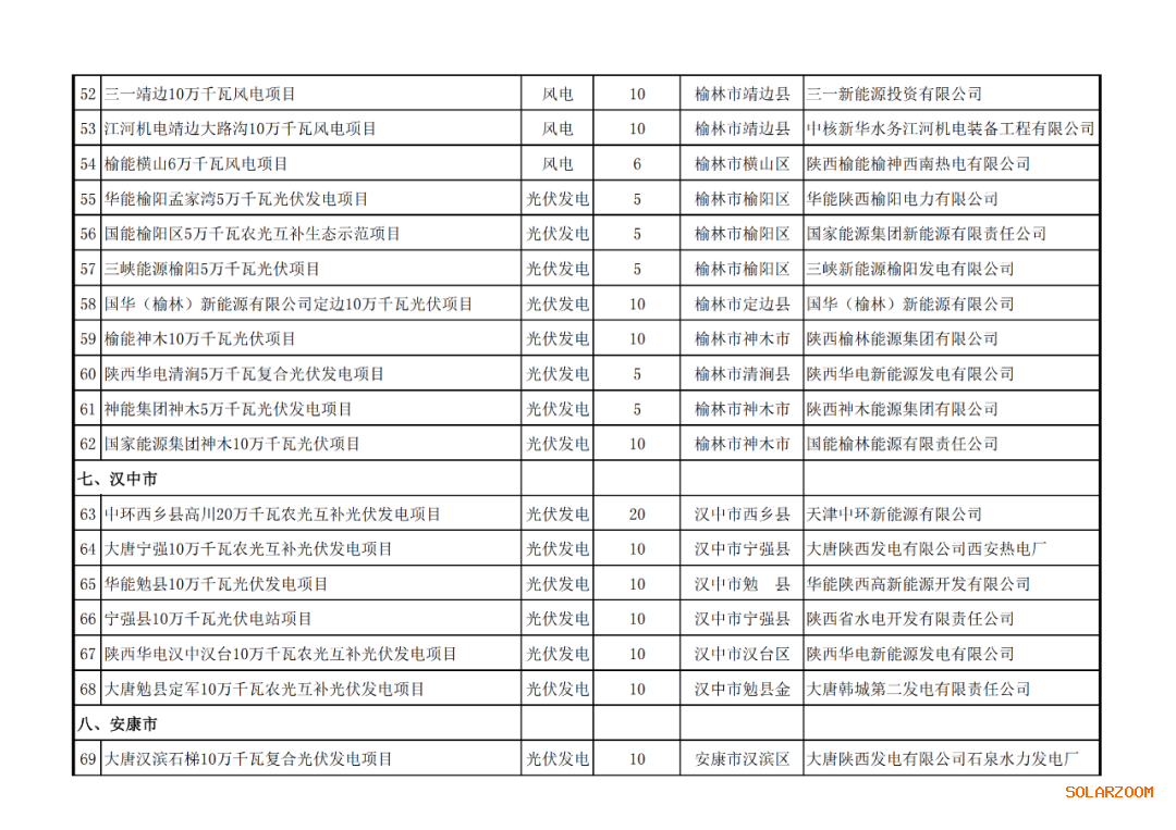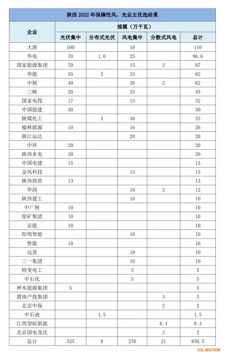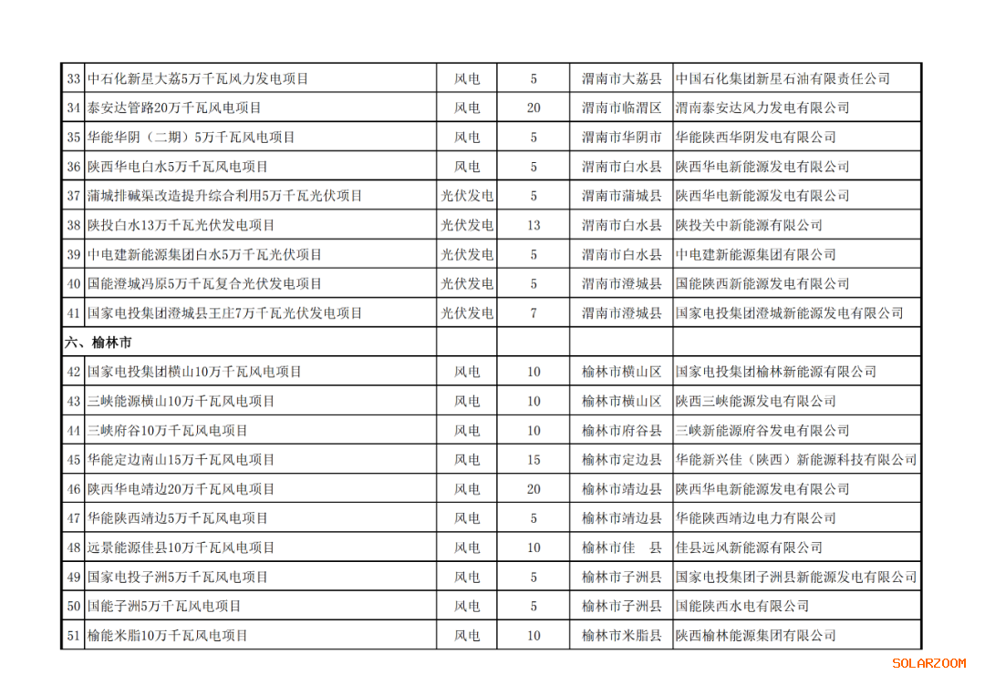 表:2022年陕西风、光伏项目保障性并网项目投资企业情况(万千瓦)