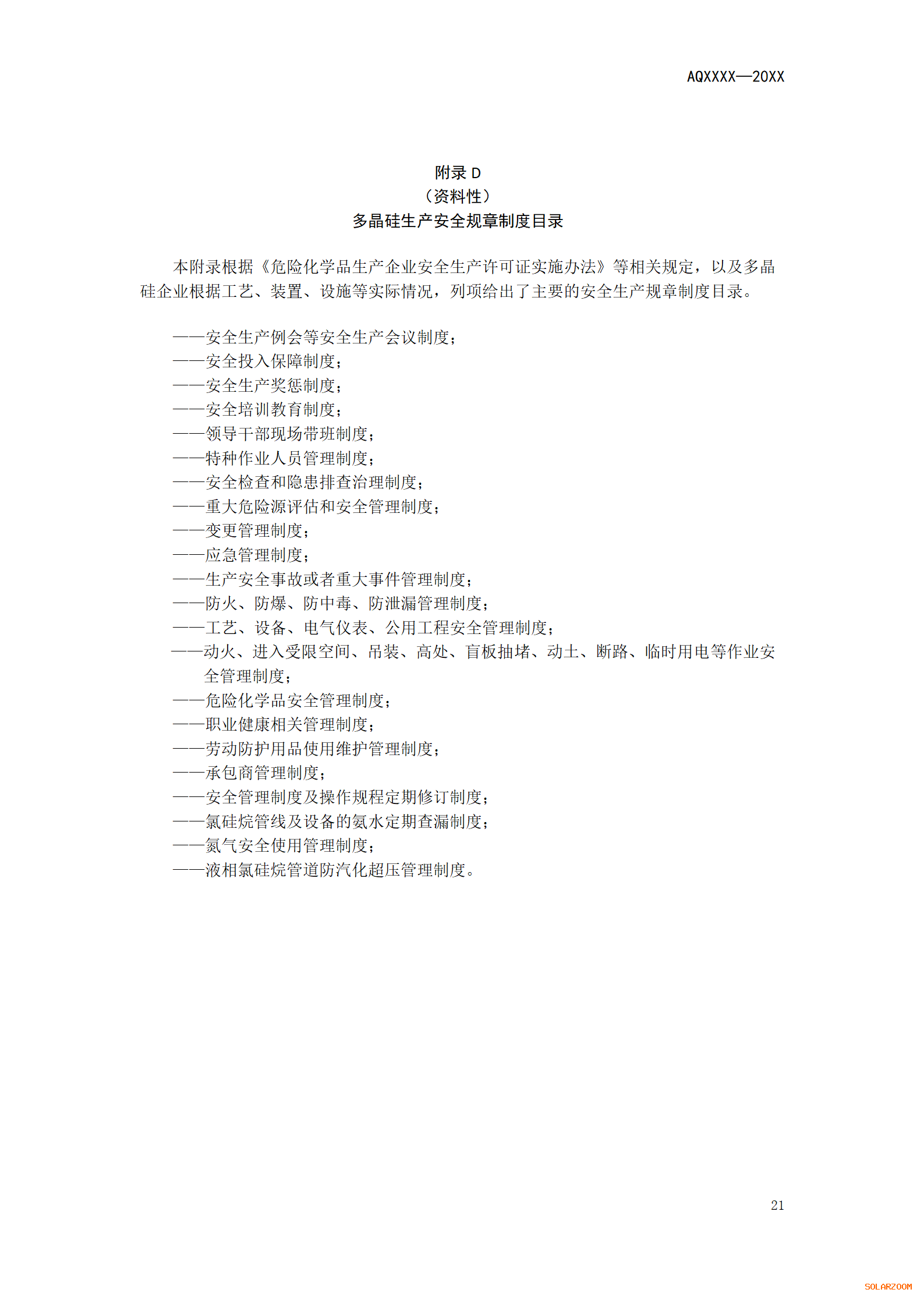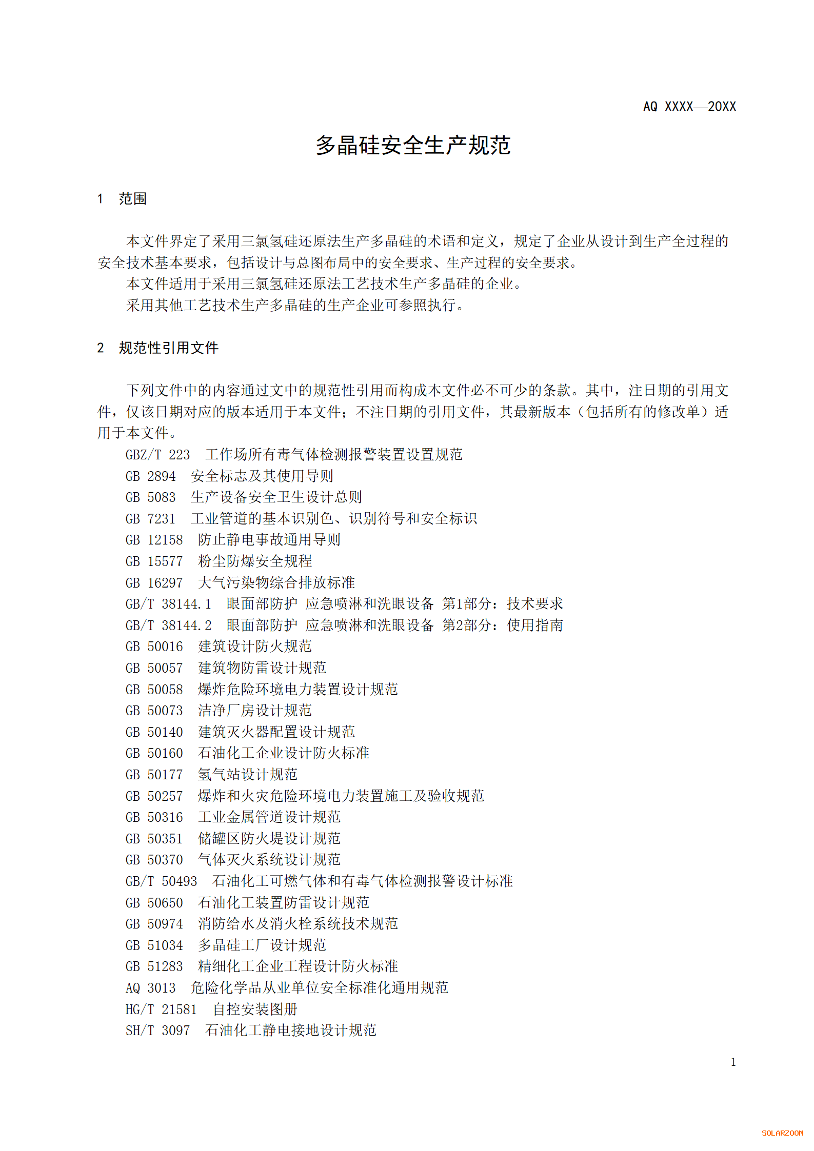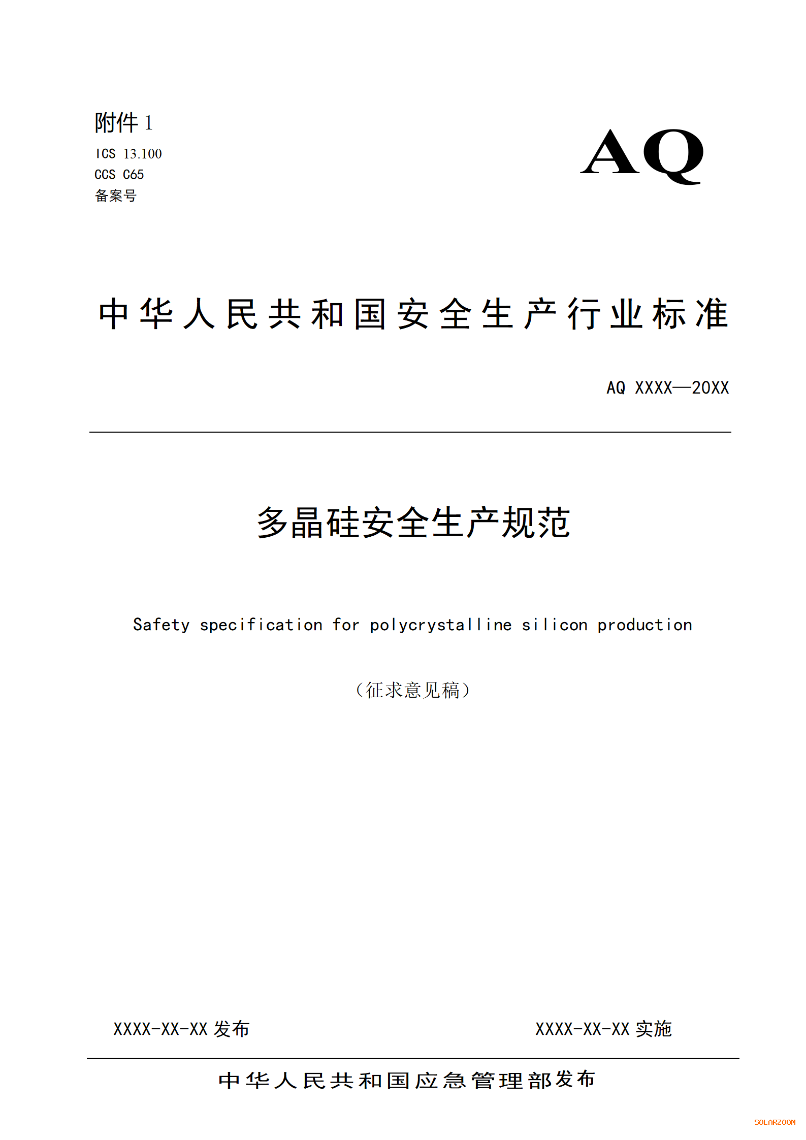 附件:1.多晶硅安全生产规范(征求意见稿)