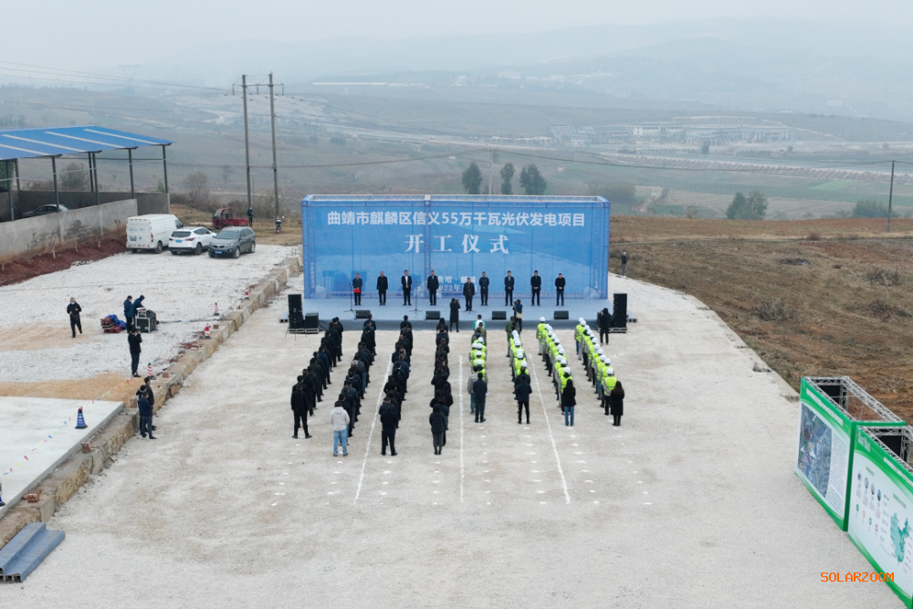 据悉,2021年麒麟区与全球硅光伏领军企业信义集团签订合作协议,总投资230亿元的20万吨多晶硅配套2万吨白炭黑、光伏组件盖板、优质浮法玻璃3个项目落户麒麟。此次开工的信义55万千瓦光伏发电项目场址位于麒麟区茨营镇、珠街街道,总装机规模55万千瓦,总投资约23.1亿元,项目建成后预计年均发电6.6亿度。