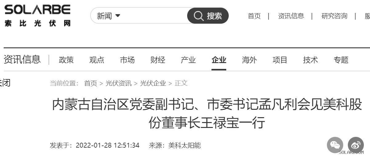根据招股书披露,“包头美科硅能源有限公司三期20GW单晶拉棒项目”是美科股份本次上市的主要募投项目,计划总投资40亿元,以包头美科硅能源有限公司为实施主体,在包头市昆都仑区金属深加工园区投资建设,项目建设完成后预计可新增单晶硅棒产能5.4万吨/年(20GW)。另据在2022年1月公开报道的《内蒙古自治区党委副书记、市委书记孟凡利会见美科股份董事长王禄宝一行》显示,美科太阳能董事长王禄宝介绍了本次与昆区人民政府签约的项目概况:包头美科三期20GW单晶拉棒及10GW切片扩建项目,协议投资40亿元。
