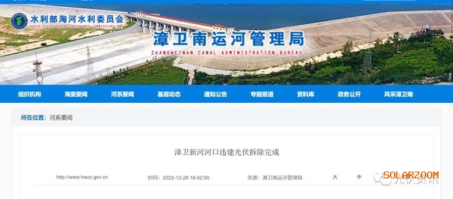 近日记者了解到,近日, 河北省漳卫南运河管理局发布新闻,表示漳卫新河河口违建光伏拆除完成。