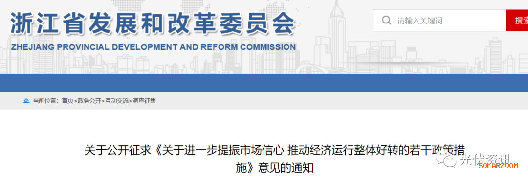 近日记者了解到,1月4日,浙江省发展改革委发布关于公开征求《关于进一步提振市场信心 推动经济运行整体好转的若干政策措施》意见的通知,通知指出,着力推进重点领域、重点行业投资。加快重大能源项目建设,加快电源、电网、油气储运等重大能源项目建设,继续对投产的光伏、风电项目实行全额保障性并网,积极支持建设符合规定的农光互补、菌光互补项目,推进公共建筑、公共设施、工业园区及企业厂房、居民屋顶分布式光伏规模化发展。强化存量资产盘活,支持符合条件的高速公路、仓储物流、水利等项目开展REITs试点。