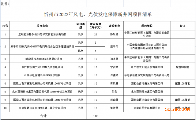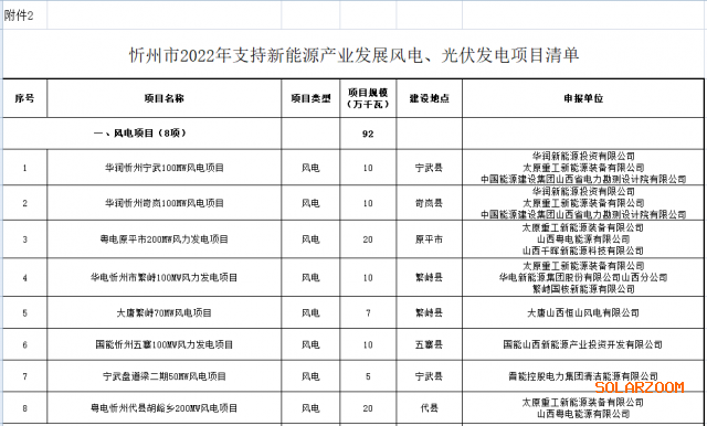 通知指出:2022年度山西省能源局共下达忻州市风电、光伏发电项目共27个326万千瓦,其中下达2022年度保障性并网项目9个105万千瓦,下达支持新能源产业发展风电、光伏发电建设项目18个221万千瓦。