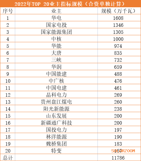 如果将合资公司单独核算,华电、国家电投、国家能源集团所获规模超10GW,4家央企介于10~5GW级、中国能建、中广核、中国电建、国投电力达5~2GW级。