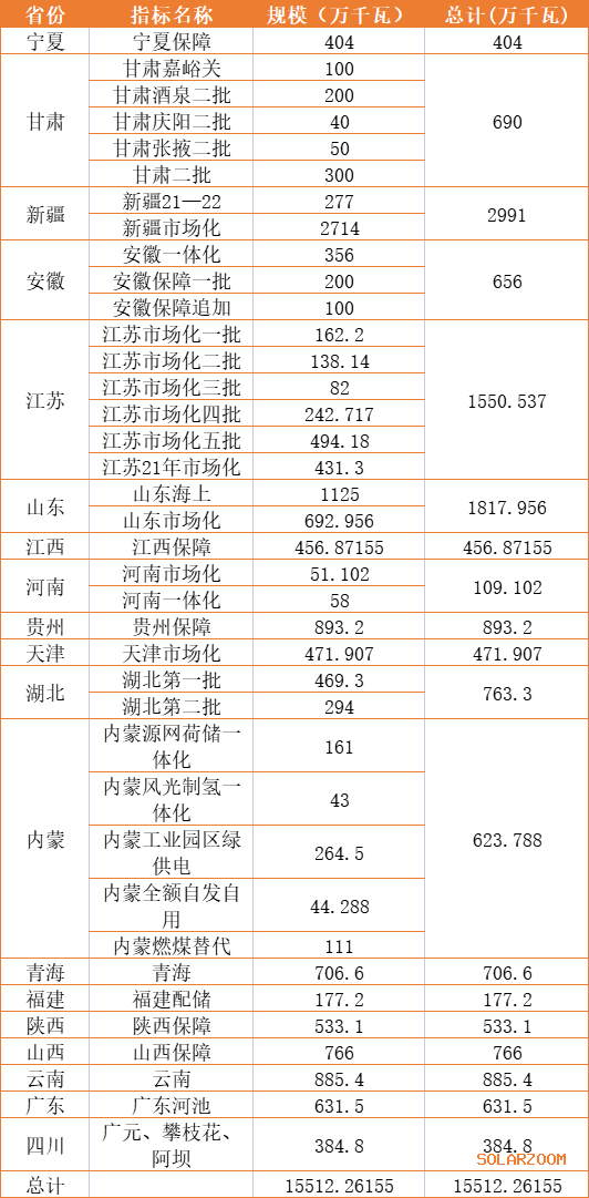 需要强调的是,本文所统计数据不包括大基地、分布式光伏项目(大基地项目将单独成文另行分析)。如果叠加大基地项目,2022年合计分配的指标规模将超过200GW,其中10GW级以上的省份也将增加,例如甘肃、内蒙、河北、青海等等。
