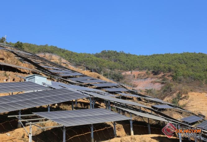 近日,记者走进普洱市景东县江边帕岭光伏发电站,放眼望去,只见周围一座座山坡上,一块块光伏太阳能板沿着山坡整齐排列,显得格外壮观。在35千伏开关站,技术人员正忙着调试设备,为并网发电做最后的准备。