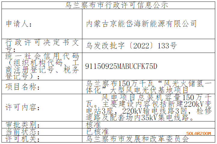 1、乌兰察布岱海发电150万千瓦风光火储氢一体项目