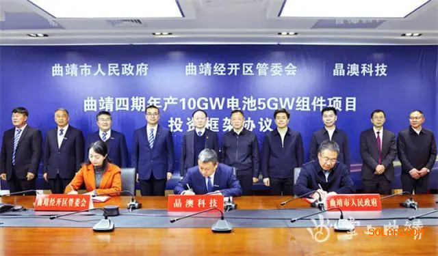 曲靖市以“开局就是决战、起跑就要加速”的奋进姿态,加足马力抢先机,全力以赴抓项目、谋发展。2月10日,曲靖市与晶澳科技在北京签订第四期年产10GW电池片和 5GW组件项目,总投资约47亿元,计划今年5月开工建设,明年5月建成投产,达产后预计实现产值120亿元;四期项目总投资173亿元,全部建成达产后预计实现产值500亿元。