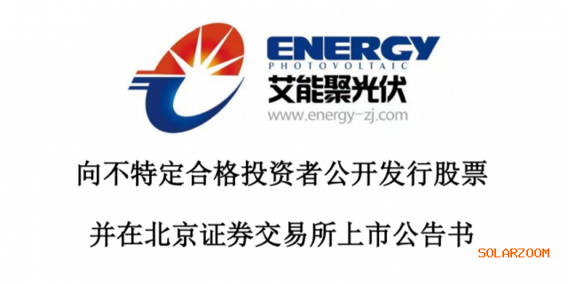 据悉,艾能聚将在2月28日正式登陆北交所,该公司核心业务为分布式光伏电站的投资运营。公开信息显示,艾能聚此次登陆北交所,发行价为5.98元/股,发行股份数量2000万股(超额配售选择权行使前),募资资金大约为1.2亿元,全部用于核心业务。