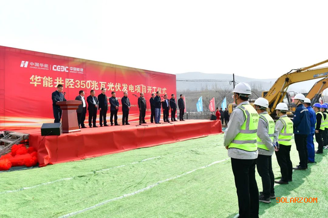 3月28日上午,上安电厂井陉350兆瓦光伏发电项目举行开工仪式,分公司副总经理霍东方出席并宣布项目开工。