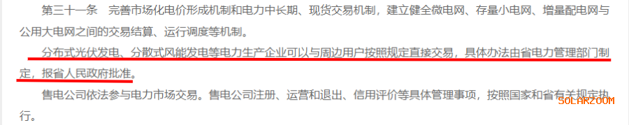 日前,浙江省第十三届人民代表大会常务委员会第三十八次会议通过了《浙江省电力条例》,《条例》提出分布式发电企业可以与周边用户按照规定直接交易,自2023年1月1日起试行。浙江“隔墙售电”进入实质化阶段。