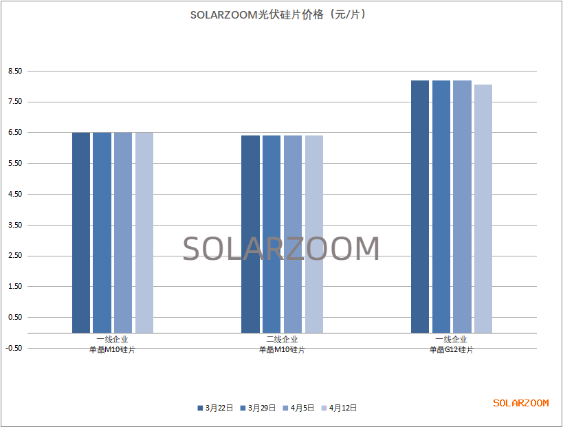 上周末国内硅片龙头企业公布了最新单晶硅片价格,其中P型M10、G12硅片价格趋势分化,单晶M10硅片价格上调至6.4元/片,但单晶G12硅片价格下调至8.05元/片,调整幅度均为0.15元/片左右。对于市场而言,单晶M10正A硅片前期供给紧张下市场上实际成交价格基本在6.35-6.45元/片,本周单晶M10正A硅片市场成交价格维稳居多,但随着市场上单晶硅片整体供给的提升,单晶硅片价格开始有趋弱迹象,区间高价成交略有减少。单晶G12硅片方面,随着下游单晶G12电池表现出量价齐升,单晶G12硅片的需求订单也有提升,但同时目前随着单晶G12硅片整体供应量逐步增加,同时也是为了保证单晶G12的性价比优势,单晶龙头硅片企业将单晶G12硅片进行了下调。N型硅片方面,本周国内龙头硅片企业也同步分尺寸N型价格进行了调整,N单晶182 110μm硅片价格上涨至6.26元/片,210 110μm硅片下调至7.87元/片,当前N型高效硅片的需求持续增加中。拉棒相关辅材坩埚、热场等方面,近期坩埚价格随着石英砂价格上涨而创新高,热场价格随着热场供给的增加而相对平稳中有所下降。