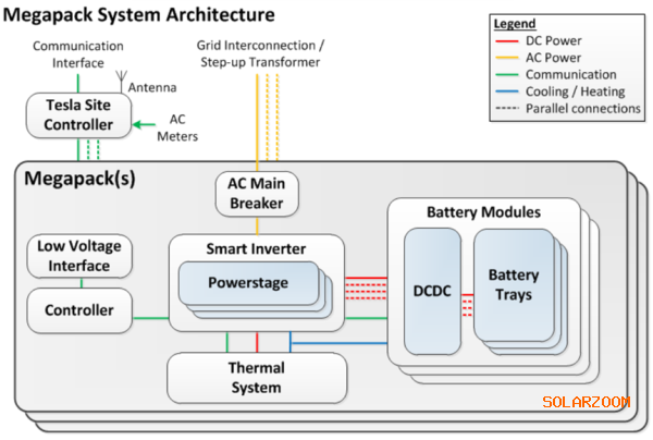 Megapack最新的一款产品是Megapack 2XL,比第一代Megapack体积大了近20%,产品中包含了与公司电动汽车相同的核心散热组件,也更方便安装,保修期长达20年。每个电池都配备独立逆变器,系统可以远程升级。