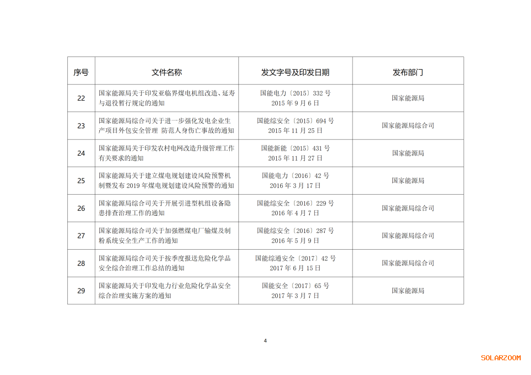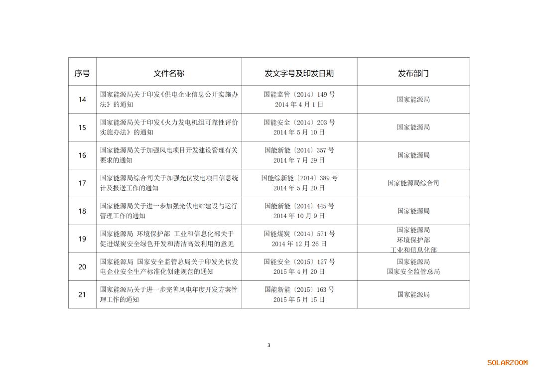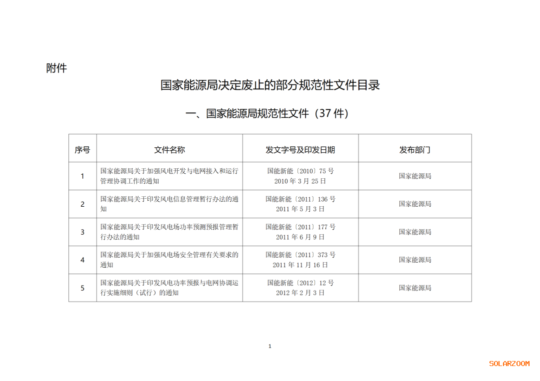 4月19日,国家能源局发布公告,将决定废止的部分规范性文件目录予以公告。其中包括国家能源局关于进一步加强光伏电站建设与运行管理工作的通知、国家能源局国家安全监管总局关于印发光伏发电企业安全生产标准化创建规范的通知等。