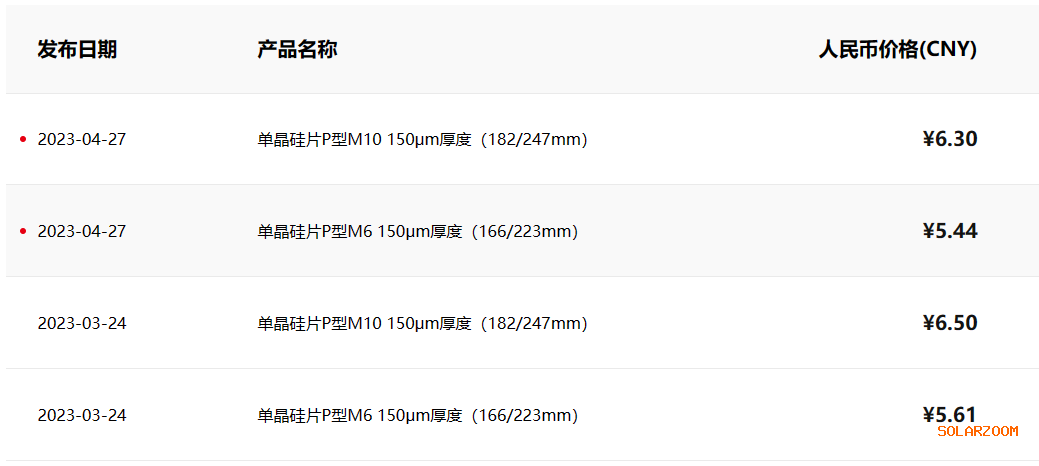 4月27日晚间,隆基官网公布了最新硅片报价。