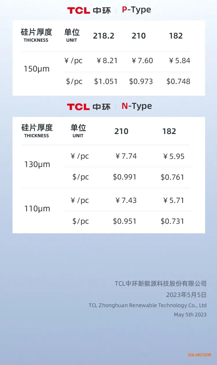 5月5日,TCL中环公布了最新硅片报价,本次报价下调幅度较大,并大幅超出另一硅片龙头4月底的报价。