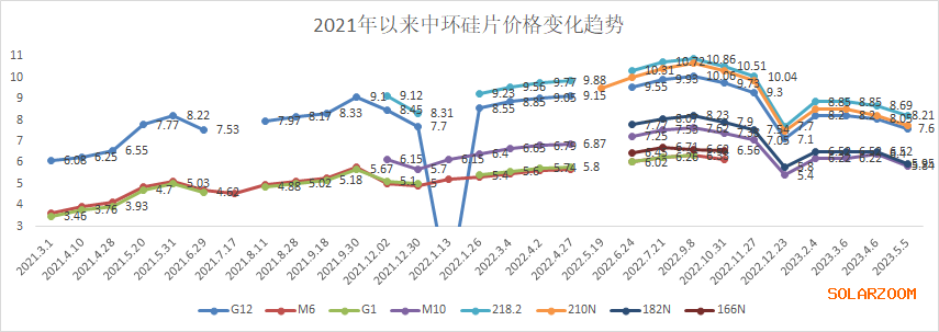 N型硅片降价幅度同样较大,其中:
