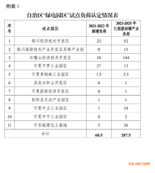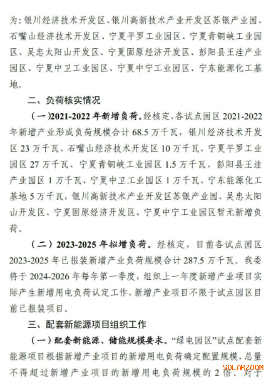 5月9日,宁夏发改委下发《关于“绿电园区”试点有关工作的通知》,拟对11个纳入“绿电园区”试点的园区新增与拟增负荷配套新能源。根据文件,本次纳入试点的11个园区其2021—2022年新增负荷为685MW,2023—2025年拟增负荷为2.875GW,以新增用电负荷确定配置新能源规模。需要注意的是,配套新能源规模不得超过新增用电负荷的2倍,2021-2022年配套新能源规模在负荷规模1倍以内的,按照不少于新能源规模10%、2 小时配套建设储能设施,1倍到2倍部分按照不少于新能源规模15%、4小时配套建设储能设施。后续年度储能配建规模根据园区负荷发展和新能源消纳情况动态调整确定。