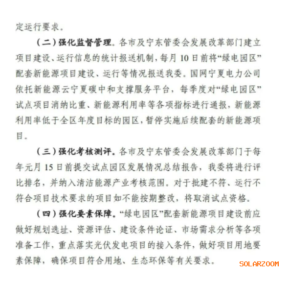 需要强调的是,国网宁夏将每季度对“绿电园区”试点项目消纳比重、新能源利用率等各项指标进行通报,新能源利用率低于全区年度目标的园区,暂停实施后续配套的新能源项目。