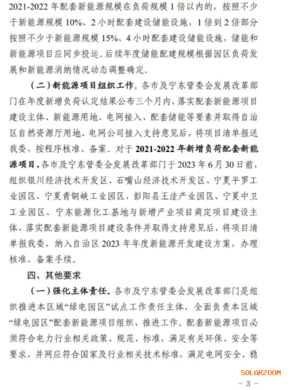 在项目组织方面,新增负荷配套新能源项目由各市及宁东管委会发展改革部门会同入选工业园区商定项目建设主体,落实配套新能源项目建设条件并取得支持意见后,将项目清单报于发改委,纳入自治区2023年年度新能源开发建设方案,办理核准、备案手续,于6月30日前报送。