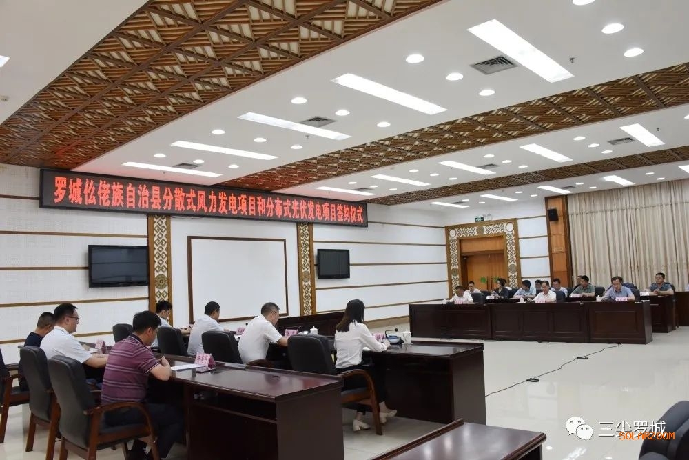 5月29日,罗城仫佬族自治县举行分散式风力发电项目和分布式光伏发电项目签约仪式,这标志着全县新能源建设又迈上一个新台阶。县委副书记、县长吴国军,县委常委、常务副县长张良洪参加仪式,自治县人大常委会副主任吴宗凯主持仪式。