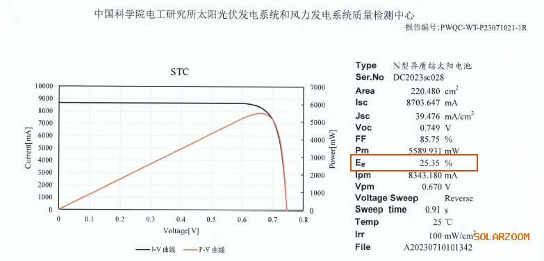 本次实验室采用120微米超薄异质结半切硅片以及单面微晶工艺,电池转换效率为25.35%!(CNAS资质中国科学院电工所认证)达到国内先进水平。在使用单面微晶工艺的同时,金辰实验室还将导入双面微晶工艺,电池转换效率能有望突破25.5%!