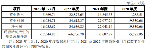 公告显示,2023年一季度,鑫芯半导体净利润为-16,035.62万元,经营活动产生的现金流量净额为-12,544.83万元。