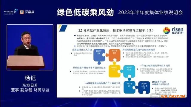 光伏行业产能过剩的论调频频见诸报端,如今,随着隆基绿能(601012.SH)官宣押注BC技术路线,关于电池技术路线之争迅速搅动市场。在9月14日举办的2023年半年度业绩说明会上,东方日升(300118.SZ)管理层就投资者关注的电池技术路线的选择及其优势等进行了说明。